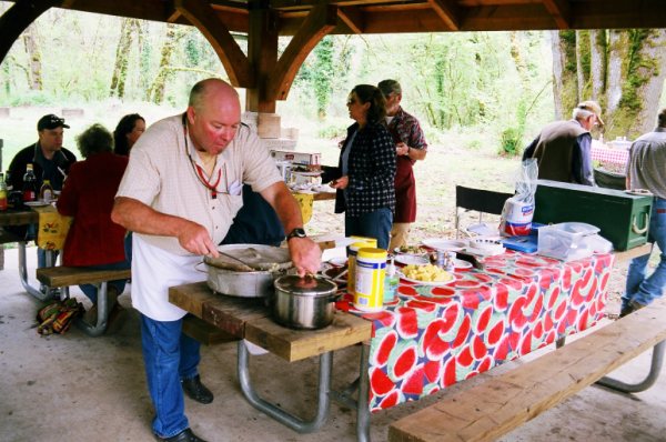 Free and open to everyone, the fifth-annual 2010 McKenzie River Wooden Boat Festival included barbecue/beer for guests to buy lunch. Proceeds from concession sales support programs by the McKenzie River Guides Association.